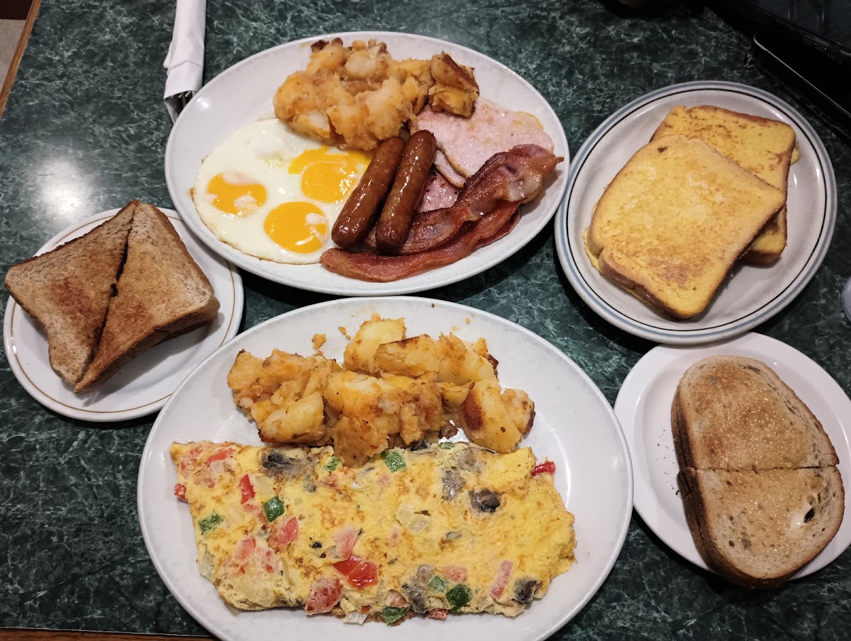 PJ’s is a must-visit, family-owned spot that’s been around since 1956. It has a classic, cozy ambiance and very friendly, proactive staff that make you feel right at home. I had the Lumberjack all-day breakfast, and it was delicious — kudos to the sausage, which was especially tasty! The food portions are generous, especially for the price — great value overall. The place isn’t very big, so you might have to wait a bit; our group of six waited about 10 minutes for a table on a Saturday around 11 a.m. One important note: they only accept debit or cash, so plan ahead. Definitely worth the visit!